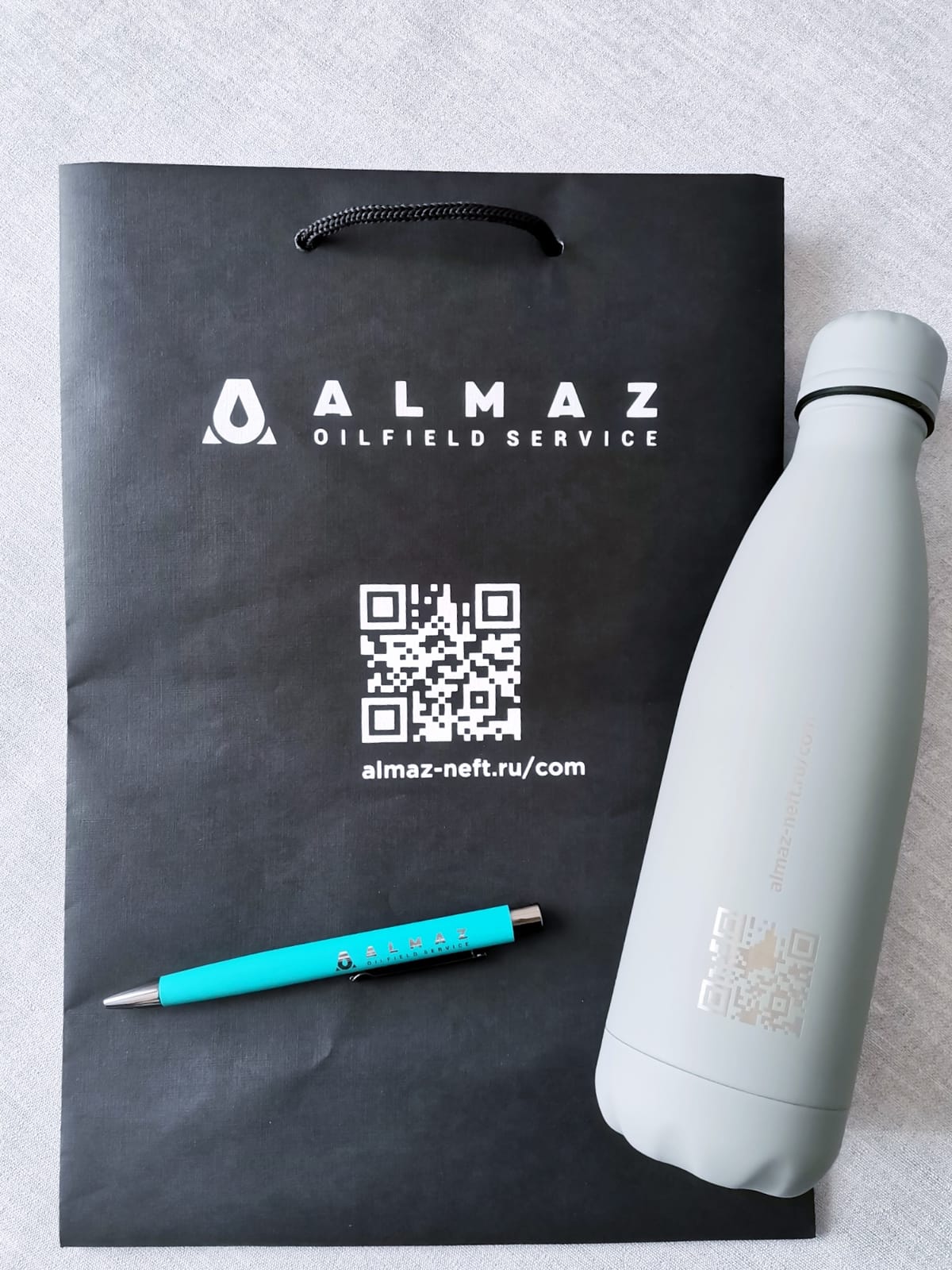 Набор упакован в подарочный пакет Imilit T черного цвета.