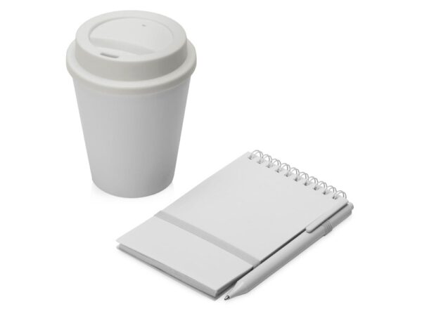 стакан d9 х 12 см, блокнот 9 х 14 х 1,4 см, ручка d1,1 х 14 см