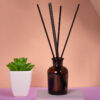 Объём диффузора 50 мл. Его будет достаточно для умеренного поддержания аромата в комнате до 15м2 в течение двух месяцев использования. Насыщенность аромата регулируется количеством используемых фибровых палочек.