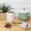 Фарфор и бамбук — идеальная пара для светлой современной кухни. Силиконовый уплотнитель надежно защищает содержимое банки от влаги и посторонних запахов.