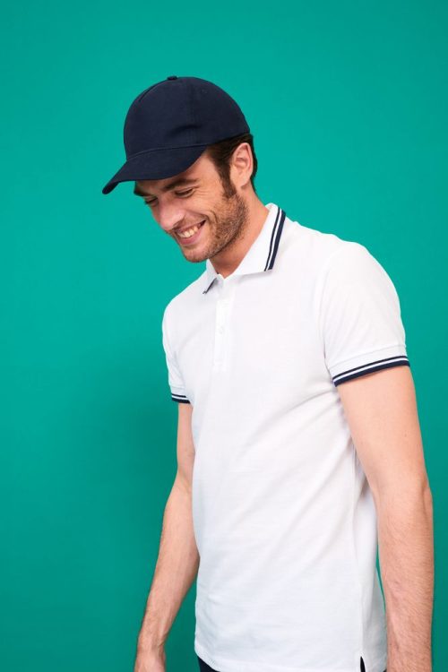 Модель: 5 клиньев без лобового шва, плотный хлопок с начесом, обшивные люверсы, металлическая застежка, козырек «сэндвич».