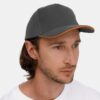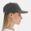 Модель бейсболки с 5-ю клиньями без лобового шва из плотного чесаного хлопка.