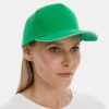 Модель бейсболки с 5-ю клиньями без лобового шва из плотного чесаного хлопка.