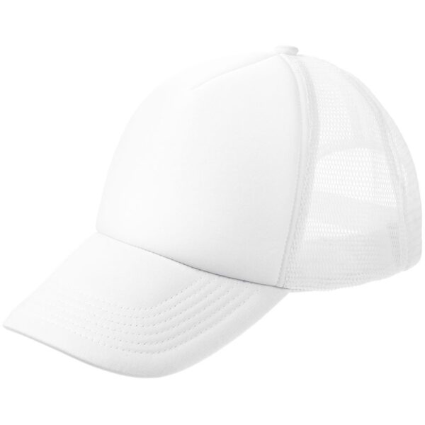 Стандартная модель с 5 клиньями без лобового шва в нестандартном исполнении. Передний клин и козырек выполнены из полиэстера с наполнителем из поролона, боковые и задние клинья — из сетки. Размер регулируется с помощью пластиковой застежки.