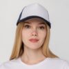 Стандартная модель с 5 клиньями без лобового шва в нестандартном исполнении. Передний клин и козырек выполнены из полиэстера с наполнителем из поролона, боковые и задние клинья — из сетки. Размер регулируется с помощью пластиковой застежки.