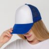 Стандартная модель с 5 клиньями без лобового шва в нестандартном исполнении. Передний клин и козырек выполнены из полиэстера с наполнителем из поролона, боковые и задние клинья — из сетки. Размер регулируется с помощью пластиковой застежки.