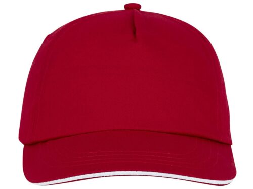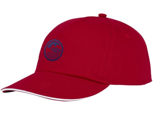 Пятипанельная кепка-сендвич Styx. Предварительно изогнутый многослойный козырек.Вышитые люверсы.Тканая липучка. Хлопок. 175 г/м². Термотрансфер (1 цвет (цветные изделия)) на данный товар осуществляется бесплатно. Оплачивается только настройка оборудования в размере 9200 рублей на весь тираж.