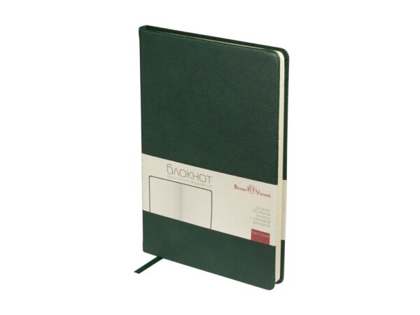 Твердая обложка с приятной фактурой, углами закругленной формы, книжный переплет и ляссе в цвет обложки наделяют блокнот практичностью.