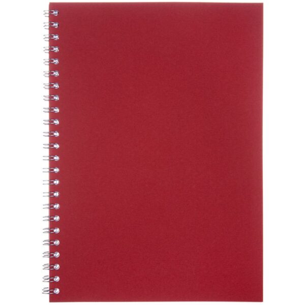 Блокнот формата А5 в клетку на пружине с цветной обложкой. Обложка из картона Fabric Embossing Linear красного цвета плотностью 300 г/м². Блок из белой бумаги плотностью 70 г/м², 50 листов.