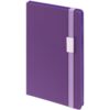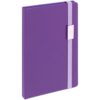 Блокнот в твердой обложке, выполнен из материала Soft Touch, фиолетовый UU, дополнен резинкой и ляссе в цвет обложки.