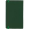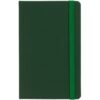 Блокнот в твердой обложке, выполнен из материала Soft Touch, зеленый FF, дополнен резинкой и ляссе в цвет обложки.