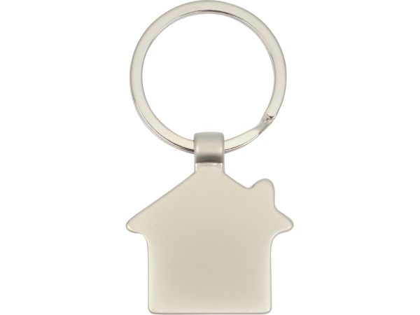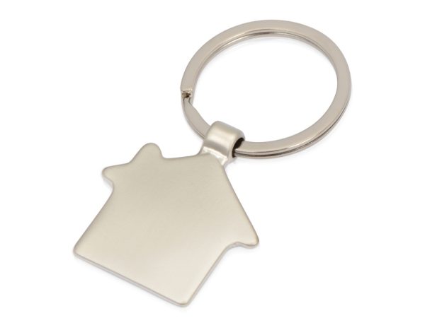 Оригинальный брелок в форме домика. Матовая металлическая поверхность идеально подходит для нанесения логотипа. Гравировка (оптоволоконный лазер) (Без чернения) на данный товар осуществляется бесплатно. Оплачивается только настройка оборудования в размере 1000 рублей на весь тираж.