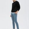 Петельки для ремня, передние косые карманы, задние прорезные карманы.