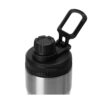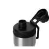 Крышка оснащена складной ручкой-держалкой, которая может быть использована для подвешивания или переноски, а также нетеряемым колпачком. Широкое питьевое отверстие позволяет быстро утолить жажду во время занятий спортом. Рельефное силиконовое кольцо по краю крышки поможет вам быстро и легко отвинтить ее от бутылки.