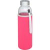 Стеклянная бутылка с одинарными стенками и съемной крышкой. На крышке есть ремешок для легкой переноски, кроме того имеется чехол из неопрена. Рекомендуется использовать для холодных напитков. Не замораживать, не разогревать в микроволновой печи. Объем 500 мл. Уложена в подарочную коробку.