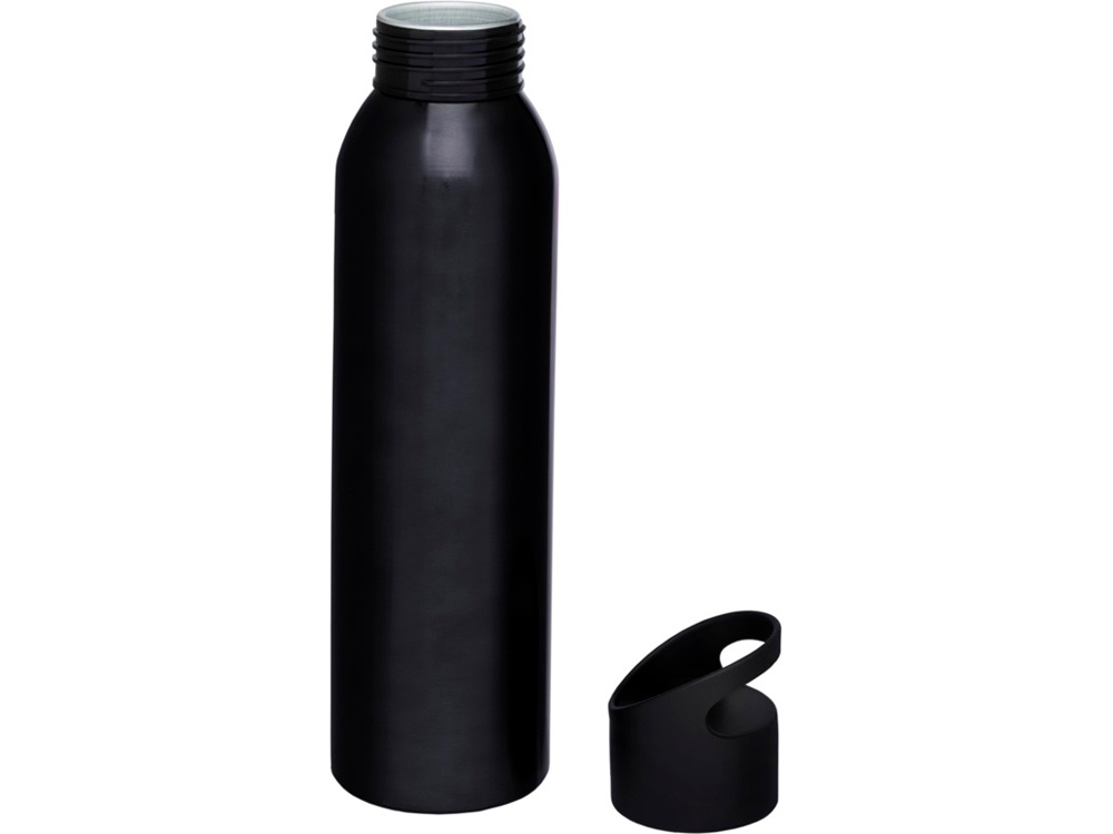 Алюминиевая бутылка с одинарными стенками и съемной крышкой. На крышке есть ручка для удобной переноски. Без содержания БФА. Объем 650 мл. Трафаретная печать круговая (1 цвет (цветные изделия)) на данный товар осуществляется бесплатно. Оплачивается только настройка оборудования в размере 5700 рублей на весь тираж.