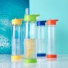Оригинальная бутылка для воды. Благодаря отделению для фруктов есть возможность создания лимонада на свой вкус. Придется по вкусу любителям натуральных продуктов и здорового образа жизни. Легко разбирается. На пластиковый корпус возможно нанесение тампопечати. Объем – 740 мл.