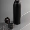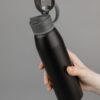 Легкая бутылка для спорта с откидной крышкой и силиконовой петлей для удобной транспортировки.