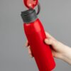 Легкая бутылка для спорта с откидной крышкой и силиконовой петлей для удобной транспортировки.