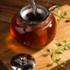Чайник Tea Drop с металлической вставкой-фильтром подходит для заваривания традиционного, травяного или фруктового чая.Стеклянный чайник с ситечком и крышкой из металла. Емкость 650 мл.