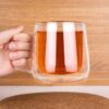 Зауженная сверху чашка Glass First производит впечатление очень аккуратной и совсем небольшой, но при этом точно понравится любителям больших кружек. Благодаря двойным стенкам из тонкого боросиликатного стекла кружка практически ничего не весит, отлично сохраняет тепло и вмещает целых 350 мл любимого напитка. Большая ручка удобно ложится даже в мужскую руку.