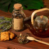 Состав: чай чёрный с имбирём и соком имбиря (чай чёрный байховый крупнолистовой, кусочки имбиря, сок имбиря), медовые гранулы, корица дроблёная.