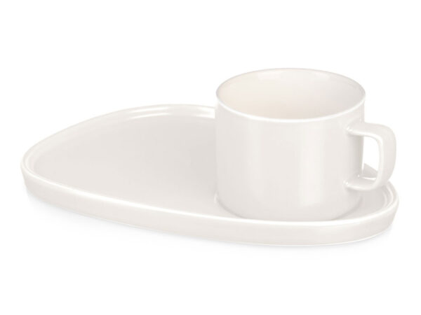 Чайная пара с необычным блюдцем — на нем хватит места не только для чашки, но и для пирожного. Удобство этой чайной пары еще и в том, что для чашки предусмотрена отдельная ниша, которая не даст ей соскользнуть.