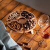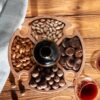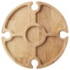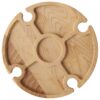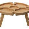 Деревянный столик на складных ножках может быть использован как во время пикников на открытом воздухе, так и дома, где его можно использовать прямо на полу. Столик позволяет подать 4 вида различных закусок, не смешивая их, благодаря четырем сепарированным секциям, в которые можно поместить ягоды, орехи и другие снеки, желательно, сухие либо подающиеся в масле (оливки, маслины). Четыре держателя для бокала особенно актуальны во время отдыха на природе, где каждый участник пикника обязательно оценит возможность зафиксировать посуду для вина.