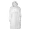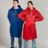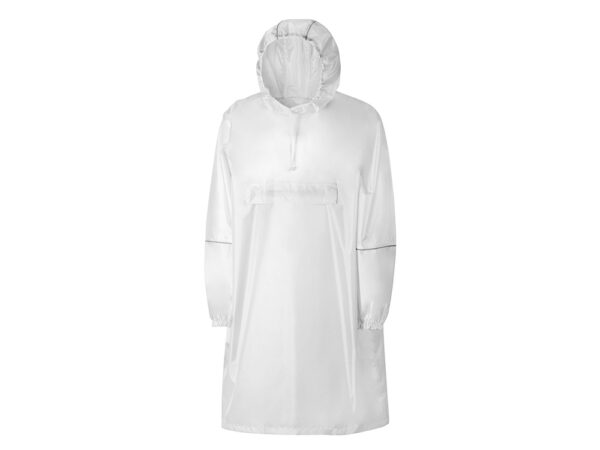 Дождевик - пончо прямого силуэта. Нагрудный карман плаща закрывается на молнию, которая дополнительно защищена клапаном, а еще в него можно полностью убрать дождевик. На дне кармана — ручка-петелька, которая в сложенном виде может использоваться для подвешивания.