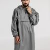 Дождевик-анорак с капюшоном и карманом на молнии спереди. Выполнен из ткани дюспо с матовой поверхностью — легкой, мягкой на ощупь, но устойчивой к повреждениям. Она не шелестит и практически не мнется. Благодаря пропитке дюспо обладает отличными водоотталкивающими и ветрозащитными свойствами.