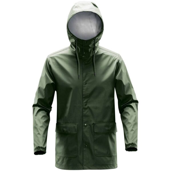Стильный и практичный дождевик на кнопках из матового водонепроницаемого и ветрозащитного материала. Благодаря сварке ультразвуком швы абсолютно водостойкие. Карманы защищены от дождя накладными клапанами.