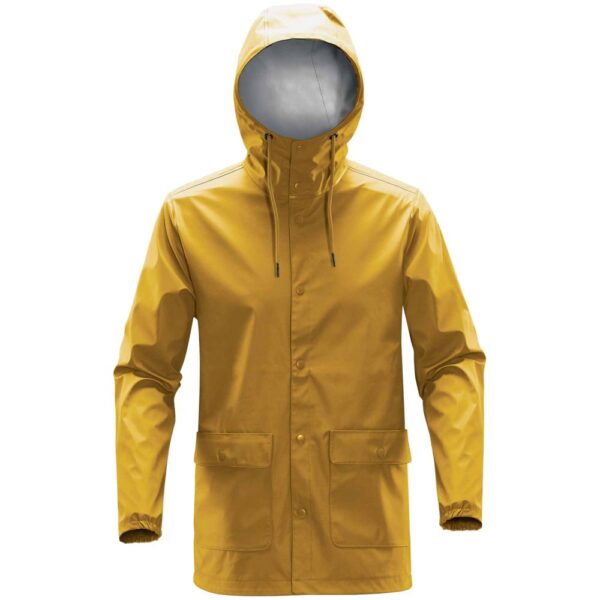 Стильный и практичный дождевик на кнопках из матового водонепроницаемого и ветрозащитного материала. Благодаря сварке ультразвуком швы абсолютно водостойкие. Карманы защищены от дождя накладными клапанами.