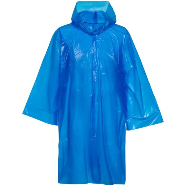 Компактный дождевик по достоинству оценят посетители фестивалей под открытым небом, парадов и народных гуляний. Даже если дождь не прольется, дождевик останется в сумке «на всякий случай». Дождевик-плащ с капюшоном и длинными рукавами из полиэтилена высокого давления (ПВД).