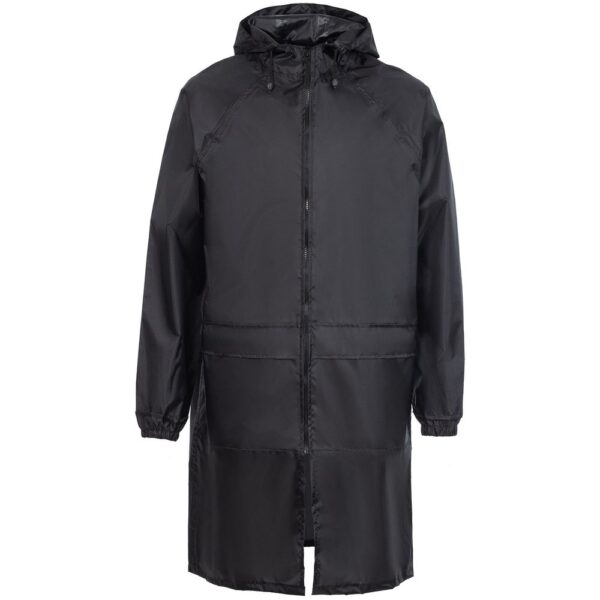 Плащ–дождевик на молнии с капюшоном и рукавами реглан. Ветрозащитные манжеты на рукавах. Регулируемый двухшовный капюшон с воротником–стойкой для защиты от ветра и дождя.