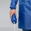 Плащ–дождевик на молнии с капюшоном и рукавами реглан. Ветрозащитные манжеты на рукавах. Регулируемый двухшовный капюшон с воротником–стойкой для защиты от ветра и дождя.