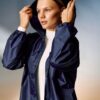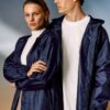 Плащ-дождевик из ткани таффета на кнопках с капюшоном.