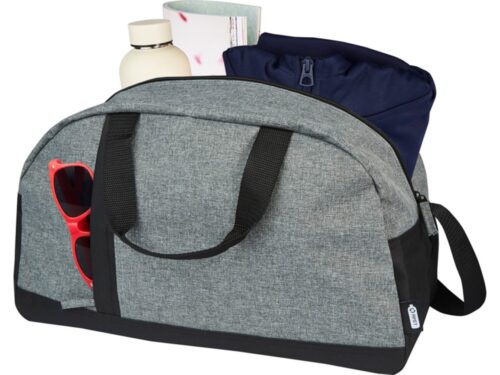 Двухцветная спортивная сумка Reclaim, снаружи изготовленная из 100% переработанных материалов по стандарту GRS, имеет вертикальный передний карман на молнии и просторное основное отделение на молнии. Обернутые лямками ручки для переноски и регулируемые плечевые ремни обеспечивают комфорт при переноске, что делает сумку идеальным вариантом для занятий спортом. Термотрансфер (1 цвет (цветные изделия)) на данный товар осуществляется бесплатно. Оплачивается только настройка оборудования в размере 9200 рублей на весь тираж.