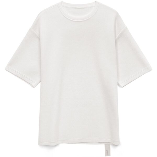 Siluetti. Силуэты уверенного будущего. Siluetti Volumica — плотный вязаный джемпер-футболка прямого кроя с круглым вырезом и спущенной линией плеча. Фирменная бирка из силиконовой ленты станет интересной деталью, привлекающей внимание на фоне общей лаконичности модели.