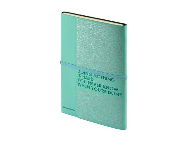 Так трудно ничего не делать, ведь совершенно непонятно, когда ты закончишь! Лаконичный слоган мотивирует к активным действиям. Планируй и завершай! Вот что кроется в элегантной надписи, выполненной золотым тиснением! А Flex обложка напоминает «Будь гибким! Великолепный недатированный ежедневник Bilbao черно-синего цвета с тиснением фольгой. Бежевая бумага 65 г/м, широкая горизонтальная фиксирующая резинка. Гибкая обложка с покрытием Soft-touch. Особенность этого ежедневника - часть обложки внахлест может использоваться как закладка. Ежедневник упакован в картонный полукороб и термопленку.