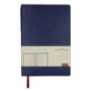Лаконичная модель в ярком исполнении: гибкая обложка синего цвета с контрастной или в цвет обложки нашивкой. Выполнен из качественной и прочной искусственной кожи, крепление внутреннего блока - книжный переплет, закладка- ляссе. Углы обложки скруглены.
