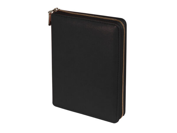 Великолепный ежедневник из качественной искусственной кожи, который заменит вам портмоне и органайзер. В ежедневнике предусмотрены карманы для карточек, сменный блок на кольцах. Внутри достаточно места для ручки и даже для мобильного телефона. Сам ежедневник закрывается на молнию. Его удобно брать с собой и на переговоры, и на деловой обед. Блок отпечатан в 2 цвета на бежевой бумаге плотностью 70 г/м2.