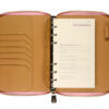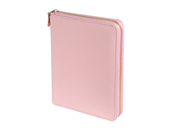 Деловая нежность! Вот как можно охарактеризовать этот очаровательный розово-зефирный ежедневник. Большое отделение на молнии вмещает в себя и сменный блок для записей на кольцевом механизме, и отделения для визиток и ручки. В этом бизнес-аксессуаре поместятся и дополнительные документы и смартфон.