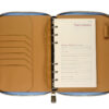 Деловая нежность! Вот как можно охарактеризовать этот очаровательный зефирно-голубой ежедневник. Большое отделение на молнии вмещает в себя и сменный блок для записей на кольцевом механизме, и отделения для визиток и ручки. В этом бизнес-аксессуаре поместятся и дополнительные документы и смартфон.