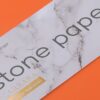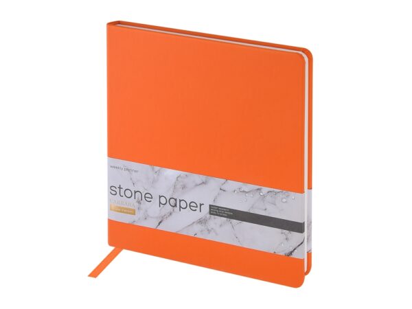 Блок произведен из каменной бумаги плотностью 144 г/кв.м, отличающейся особой гладкостью и повышенной прочностью. Она не боится воды и пролитого кофе, достаточно просто протереть сухой салфеткой.