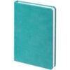 Ежедневник с твердой обложкой, выполнен из материала Latte, цвет морской волны II, дополнен ляссе в цвет обложки.