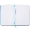 Ежедневник с гибкой обложкой, выполнен из материала Soft Touch, черный АА, дополнен петлей для ручки из материала Nice Touch, голубой JJ и цветным ляссе.