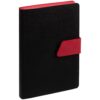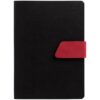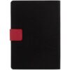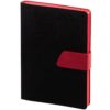 Ежедневник с гибкой обложкой, выполнен из материала La Fite, черный АА и Nubuck, красный РР, дополнен красным ляссе и хлястиком на кнопке.