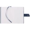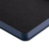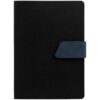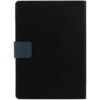 Ежедневник с гибкой обложкой, выполнен из материала La Fite, черный АА и Nubuck, темно-синий ХХ, дополнен синим ляссе и хлястиком на кнопке.