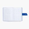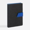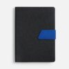 Ежедневник с гибкой обложкой, выполнен из материала La Fite, черный АА и Nubuck Touch, синий, дополнен синим ляссе и хлястиком на кнопке.