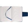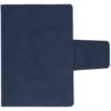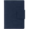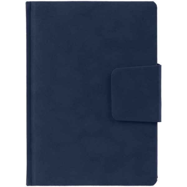 Ежедневник с твердой обложкой c поролоном, выполнен из материала Nubuck, темно-синий ХХ, дополнен капталом и ляссе темно-синего цвета. Застежка — хлястик на магните.